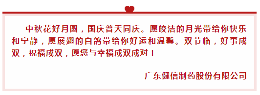中秋国庆喜相逢,健信制药送祝福!